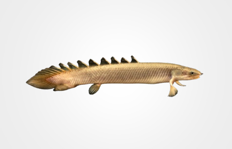 The palm fish (Polypterus spp.) is an ancient predatory ornamental fish native to Africa that is popular because of its shape resembling a freshwater dragon.